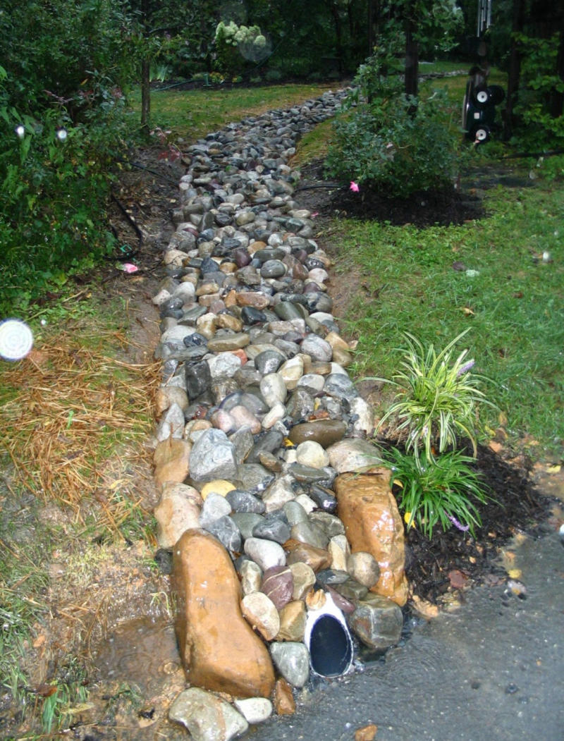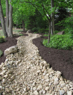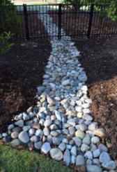 DRAINAGE SERVICES Our goal here at Cunningham Landscape and Irrigation is to identify the source of your exterior drainage problem and correct it. Instead of treating the symptoms of drainage issues with sump pumps or interior drains, we address the root cause. All of our solutions reside outside your home. From diagnosis to design to installation, we provide a turnkey drainage solution designed for lifetime performance. CLICK ON IMAGES BELOW TO ENLARGE